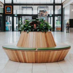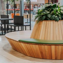 Диван FLORA сочетает элегантный дизайн и встроенные элементы озеленения, обеспечивая гостям комфорт и улучшая атмосферу помещений за счет живых растений. Подойдет для стильного оформления интерьеров в самых разнообразных общественных пространствах.