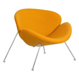 Кресло дизайнерское EMILY — жёлтая ткань AF13 и хромированный каркас для ресторанов, офисов и современных интерьеров! Радиусные формы сиденья, нагрузка до 150 кг и стиль в духе скандинавского минимализма. Гарантия 12 месяцев + доставка по Санкт-Петербургу!