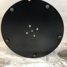 Металлическое подстолье с матовым чёрным покрытием и золотой вставкой — элегантная опора для столешниц 80×80 см. Уникальный дизайн в форме песочных часов.