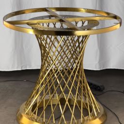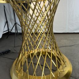 Дизайнерское подстолье из полированной нержавеющей стали с золотым покрытием TiN — роскошная опора для столешниц Ø160 см. Увеличенная верхняя платформа 120 см обеспечивает устойчивость для массивных конструкций.