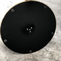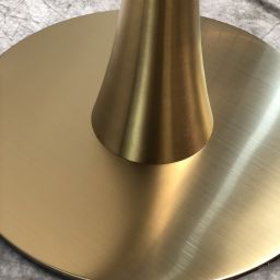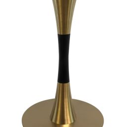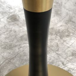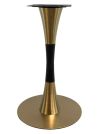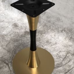 Дизайнерское подстолье из матовой нержавеющей стали с золотым покрытием TiN — ультрасовременная опора для столешниц Ø80 см. Скульптурная форма «песочных часов» с чёрной акцентной вставкой создаёт эффект парящей конструкции.