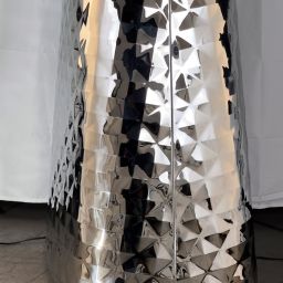 Дизайнерское подстолье из полированной нержавеющей стали с чеканкой ромбов — современная опора для столешниц 120×80 см. Сужающаяся кверху форма и трёхмерный узор создают эффект динамики в интерьере.