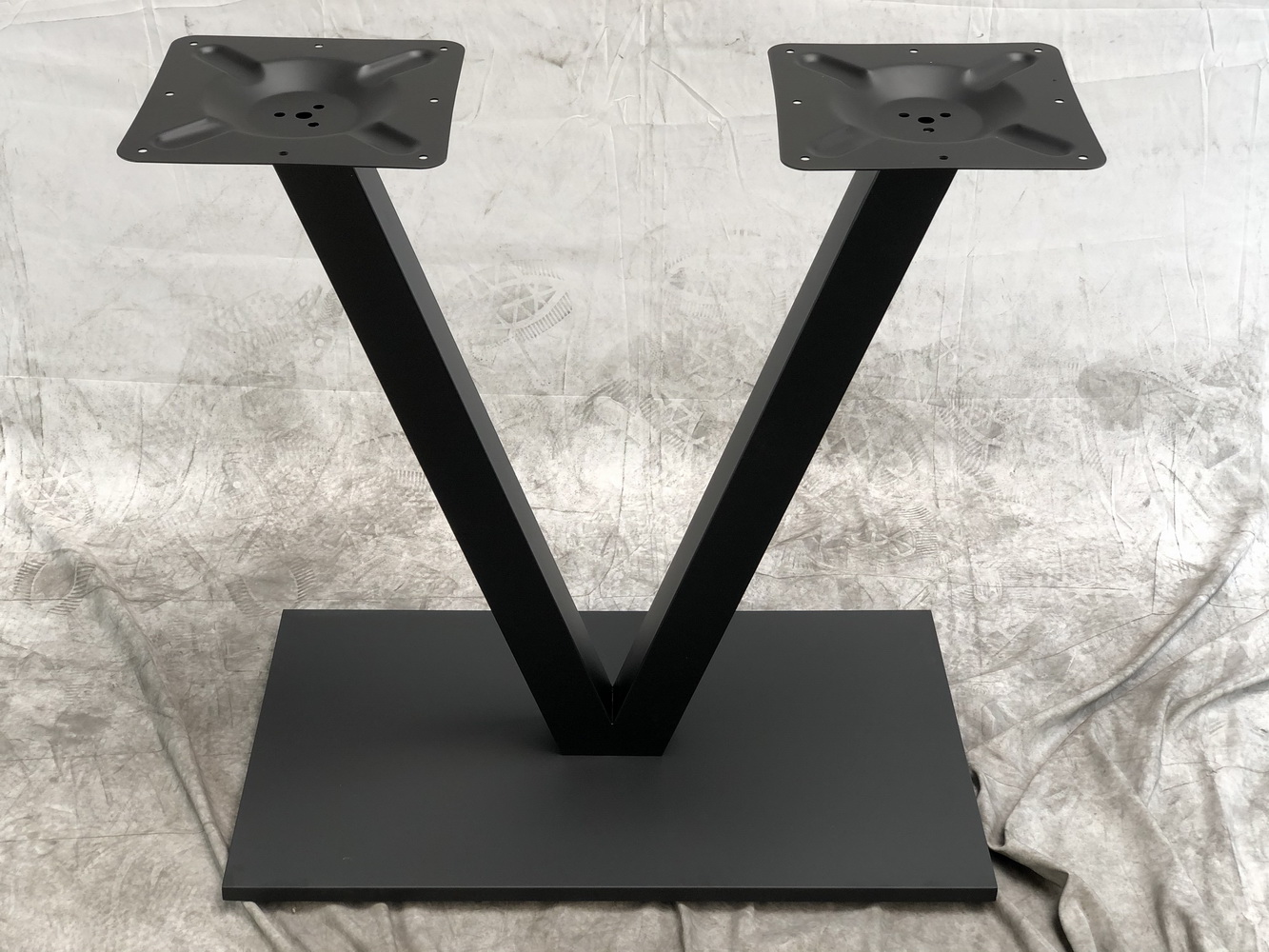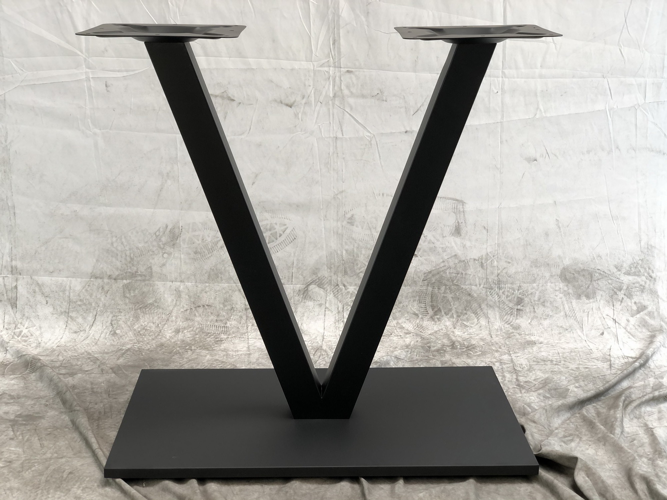 Стильное металлическое подстолье с V-образной конструкцией - надежное решение для создания современного обеденного стола. Прочная стальная конструкция обеспечивает устойчивость, а матовое черное покрытие придает изделию элегантный внешний вид и защищает от механических повреждений.