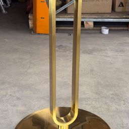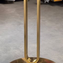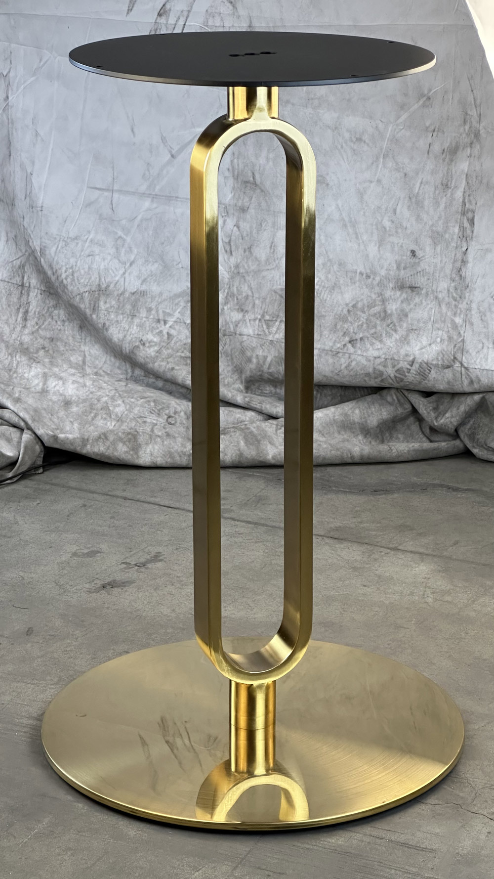 Современное подстолье из стали с матовым черным покрытием - идеальное решение для создания стильного обеденного или журнального стола. Раздвоенная конструкция опоры придает изделию легкость и воздушность, а золотое покрытие добавляет элегантности и прекрасно сочетается с любым дизайном интерьера.
