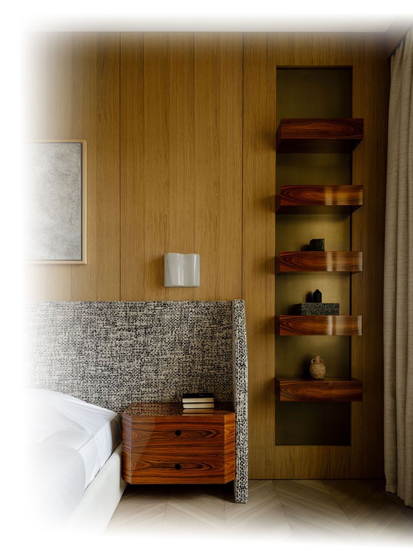 - Уютные кровати и роскошные изголовья, превращающие спальню в оазис комфорта.